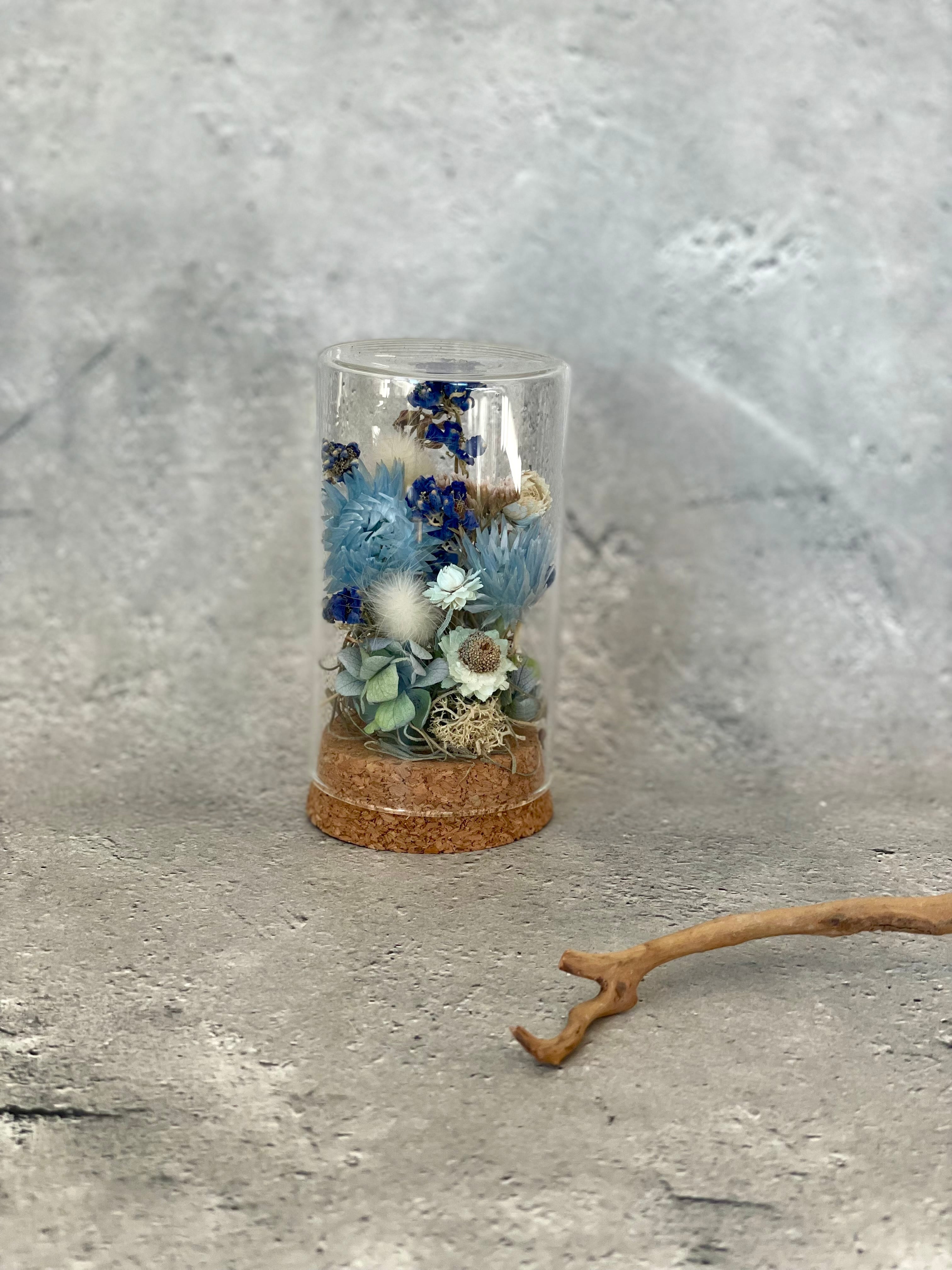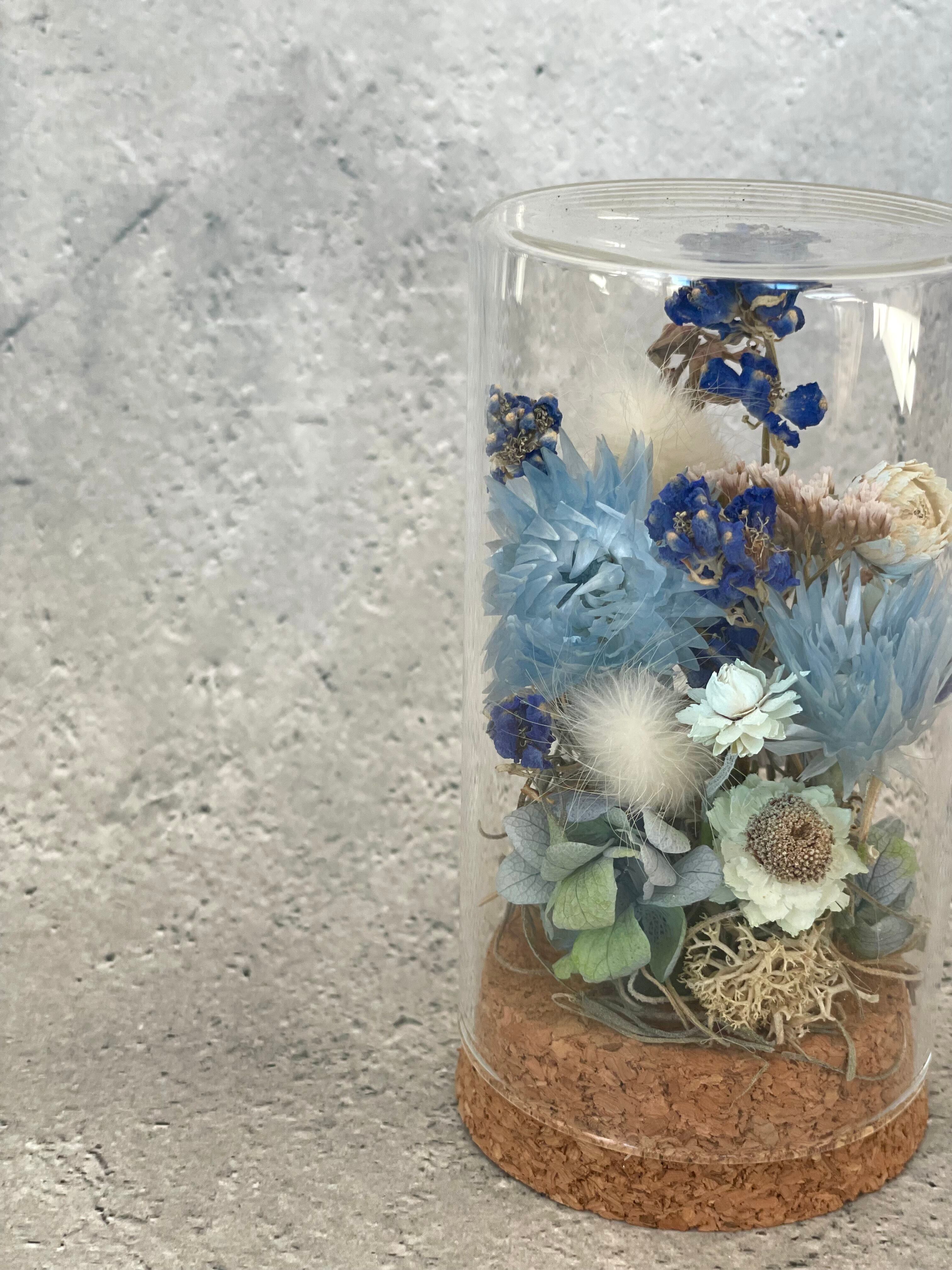 小さなガラスケースの中に入ったアレンジになります。