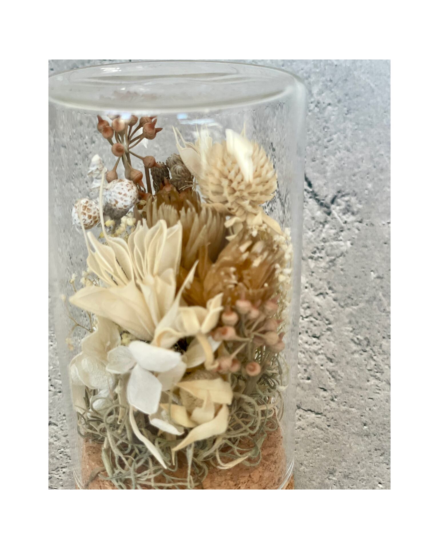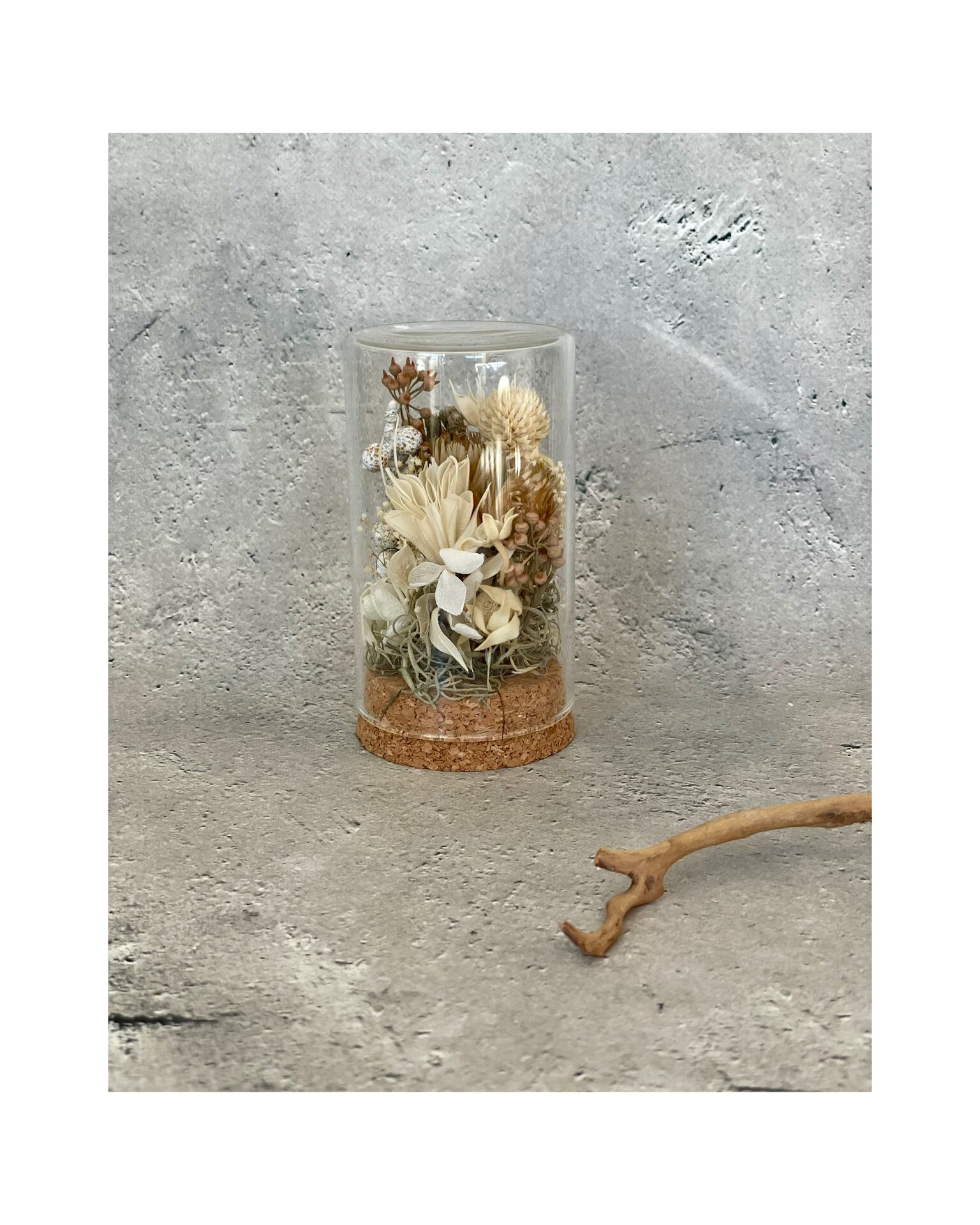 小さなガラスケースの中に入ったアレンジになります。